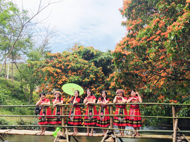 Hoa trang rừng là đặc sản của Suối Tà Má, hoa thường nở rộ từ tháng 2 đến tháng 4 dương lịch (đặc biệt là giữa tháng 3) với các sắc màu từ vàng, cam đến đỏ rực, tạo nên khung cảnh như mùa thu ở Châu Âu. Dòng suối mát lạnh, trong vắt, chảy róc rách qua các ghềnh đá, rất thích hợp để tắm suối và thư giãn. Đoàn dừng chân nghỉ trưa tại đây là một nơi lý tưởng để ngắm hoa và chụp ảnh check-in với khung cảnh núi rừng hoang sơ; được tắm suối, dã ngoại và thưởng thức các món ăn địa phương như gà rừng nướng, cơm lam,…