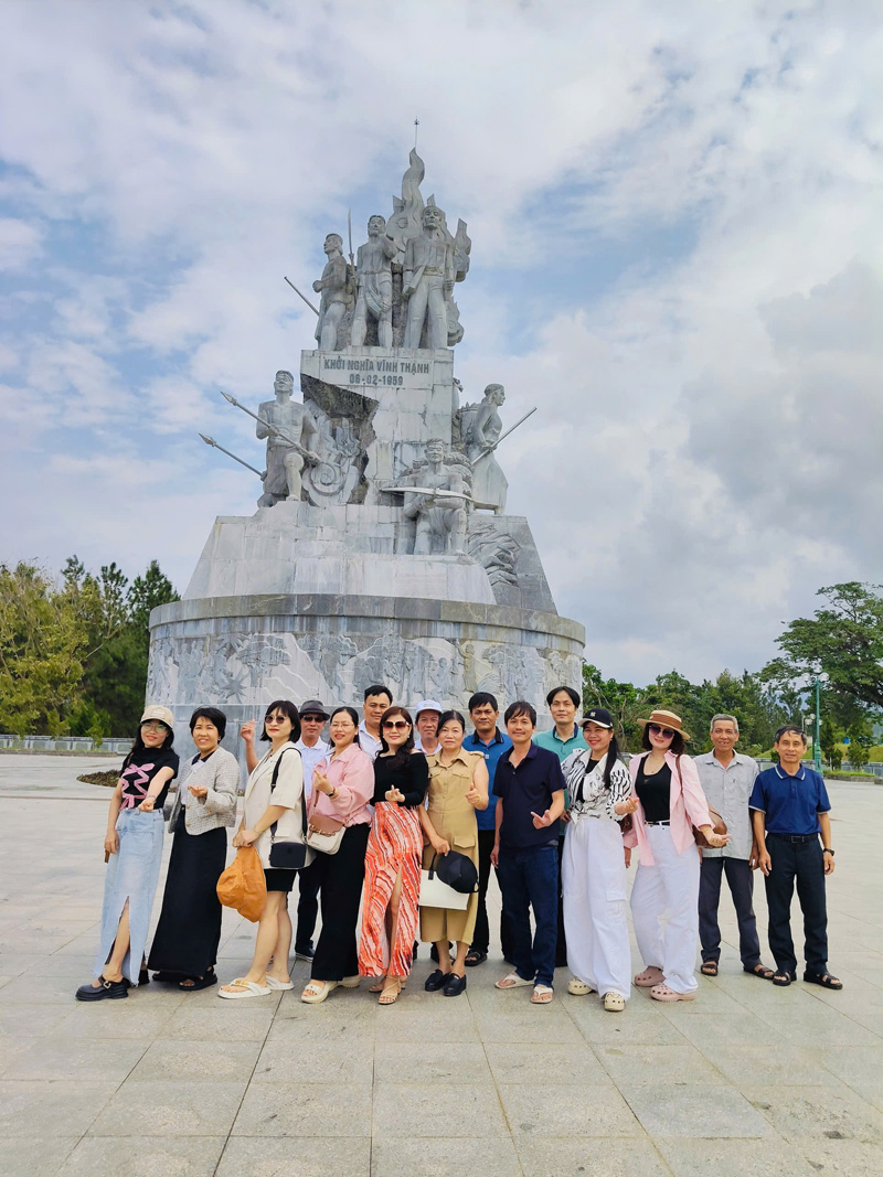 Khoảng 7h30, xe ô tô có mặt tại Trung tâm đón tập thể cán bộ, viên chức và người lao động Trung tâm, khởi hành đến Tượng Đài Khởi Nghĩa Vĩnh Thạnh. Công trình được xây dựng trên đồi Lâm Viên, thuộc thị trấn Vĩnh Thạnh, huyện Vĩnh Thạnh, Tỉnh Bình Định cũ, nay là xã Vĩnh Thạnh, tỉnh Gia Lai. Tượng đài ghi dấu ấn cuộc khởi nghĩa Vĩnh Thạnh ngày 06/02/1959, một trong những cuộc nổi dậy đầu tiên ở miền núi Khu 5 chống lại chế độ Mỹ – Diệm và chính sách dồn dân, lập ấp.