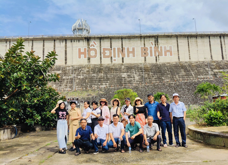 Sau khi tham quan và tìm hiểu Tượng Đài Khởi Nghĩa Vĩnh Thạnh, xe tiếp tục lăn bánh đưa đoàn đến tham quan và tìm hiểu Hồ Định Bình. Công trình nằm trên sông Kôn, xã Vĩnh Hảo, huyện Vĩnh Thạnh, tỉnh Bình Định cũ, nay thuộc xã Vĩnh Thạnh, tỉnh Gia Lai, khánh thành năm 2009. Hồ Định Bình là hồ nước ngọt nhân tạo lớn nhất tỉnh Bình Định cũ với tổng dung tích Hồ là 226,21 triệu, dung tích phòng lũ là 227,48 triệu; là đập ngăn sông đầu tiên tại Việt Nam áp dụng công nghệ bê tông đầm lăn. Hồ có nhiệm vụ điều tiết lũ, cung cấp nước sản xuất nông nghiệp, nuôi trồng thủy sản và phát điện.