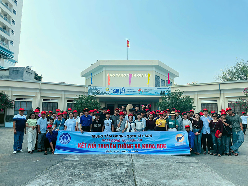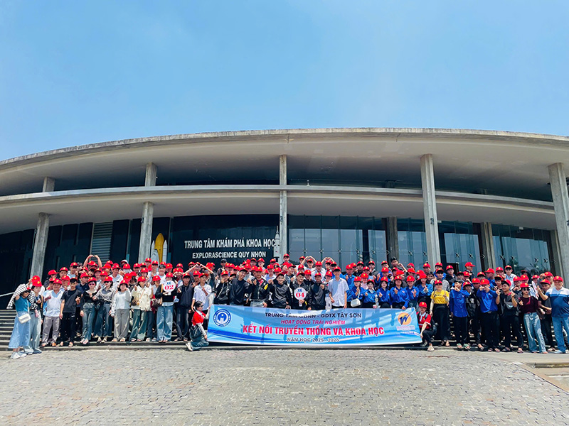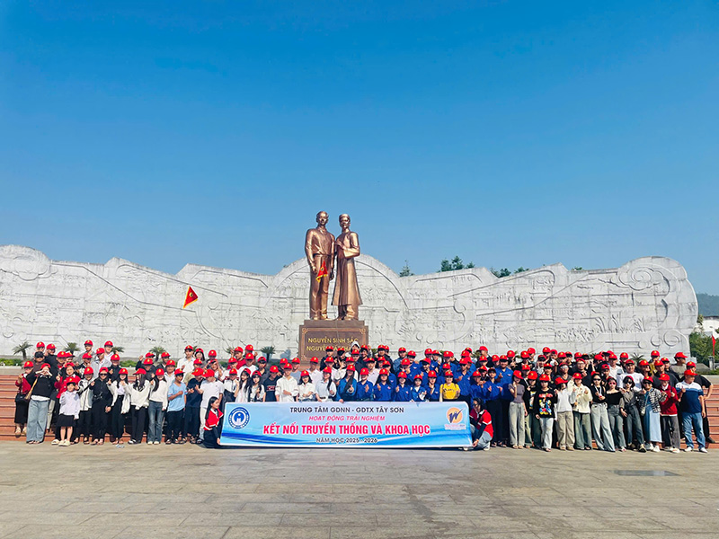Thực hiện kế hoạch năm học 2025 – 2026, nhằm mang đến cho học viên sự trải nghiệm độc đáo về vùng đất “Địa linh nhân kiệt”, “Đất võ trời văn” và mang đến một sân chơi bổ ích, một sự trải nghiệm thú vị khám phá khoa học, tìm hiểu lịch sử – văn hóa làng nghề truyền thống, ngày 04 tháng 4 năm 2026 Trung tâm GDNN – GDTX Tây Sơn đã tổ chức hoạt động trải nghiệm “KẾT NỐI TRUYỀN THỐNG VÀ KHOA HỌC” dành cho 130 học viên khối 10 và khối 11. Đi cùng với học viên còn có lãnh đạo và giáo viên của Trung tâm.
